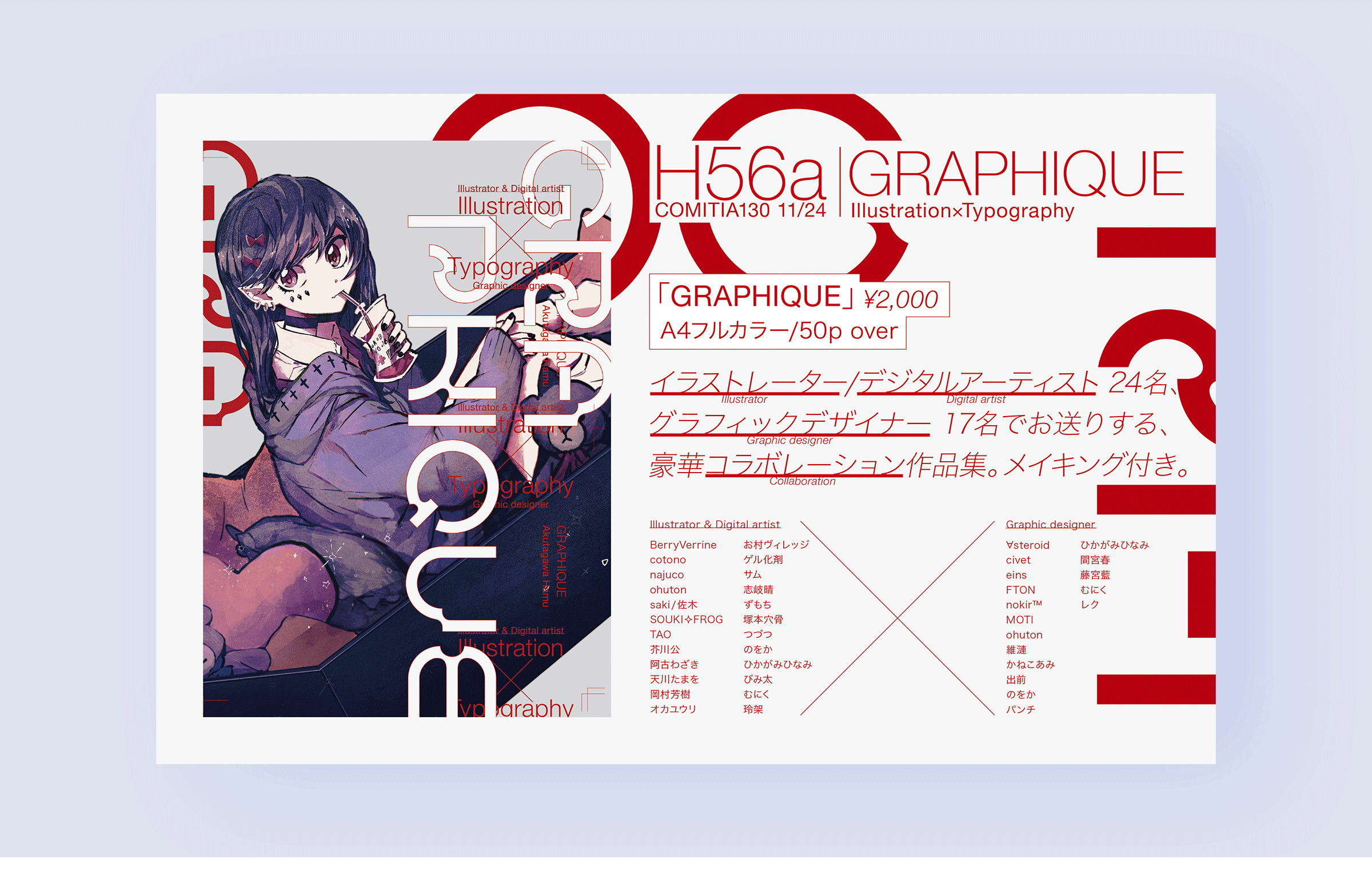 コミティアvol.130にて頒布された、芥川ハムさん企画の「GRAPHIQUE」に掲載頂いた作品です。
