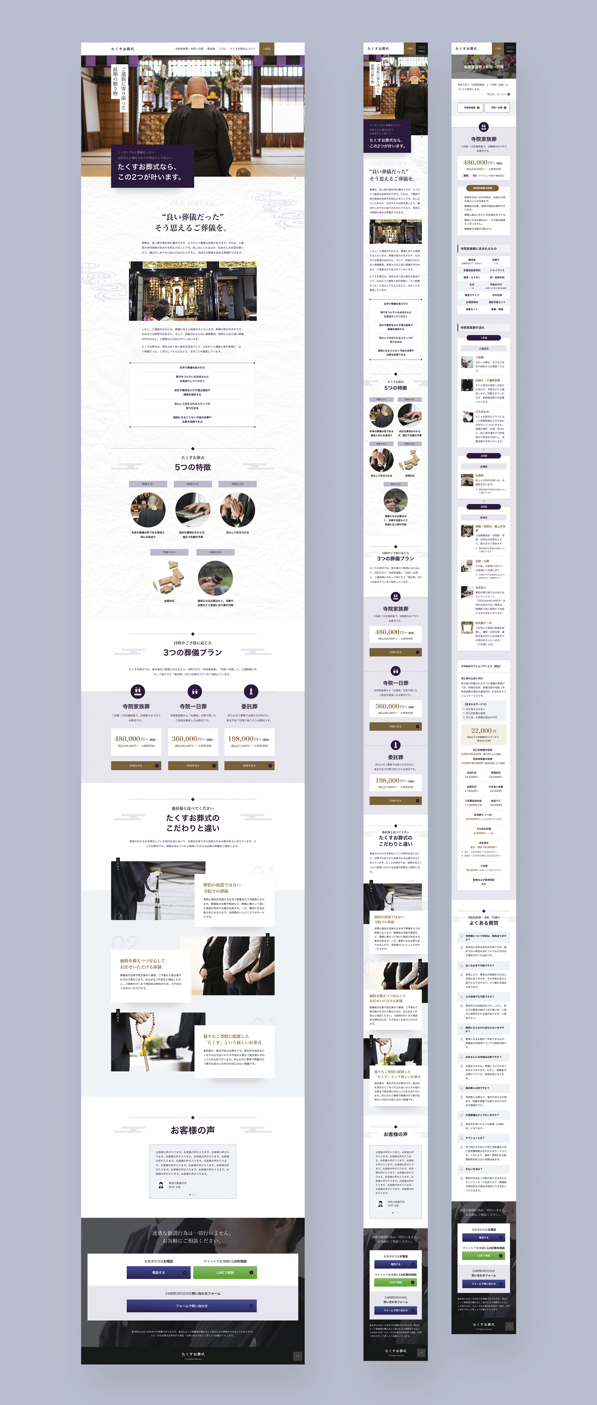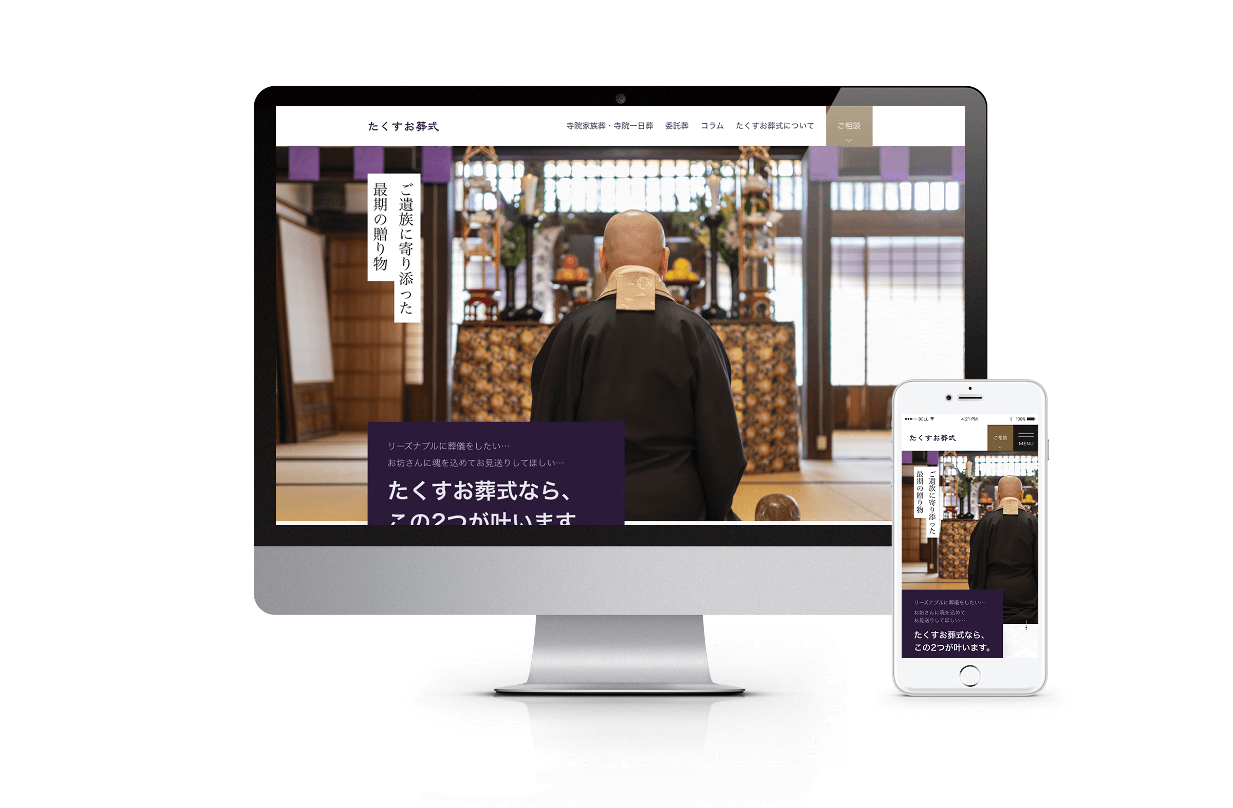 「予算面での不安」や「気持ちを込めたお葬式をしたい」といったご遺族のご意向に親身に向き合うたくすお葬式様のサイトデザインです。